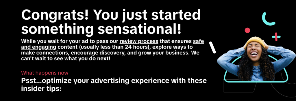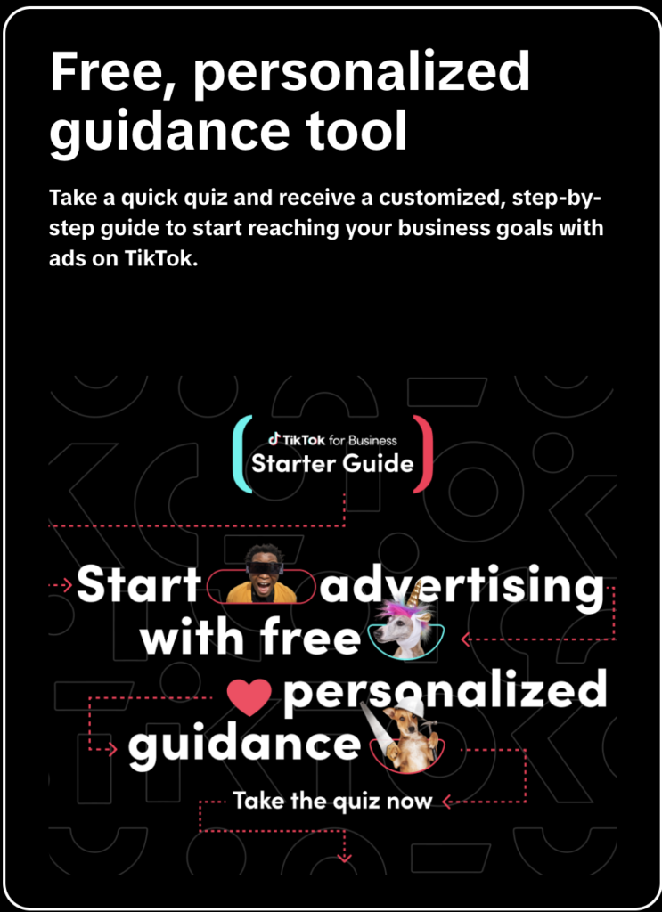 Given that the specific steps vary depending on goals, e-commerce affiliation, and other aspects, TikTok for Business needed to make the startup process clearer for small businesses. They wanted to provide the steps, tips, and tricks necessary for easing successful startup. Working with a dedicated team, I helped map out the various pathways and outcomes and crafted copy that relayed a lot of information while retaining the informal, authentic tone TikTok is known for.